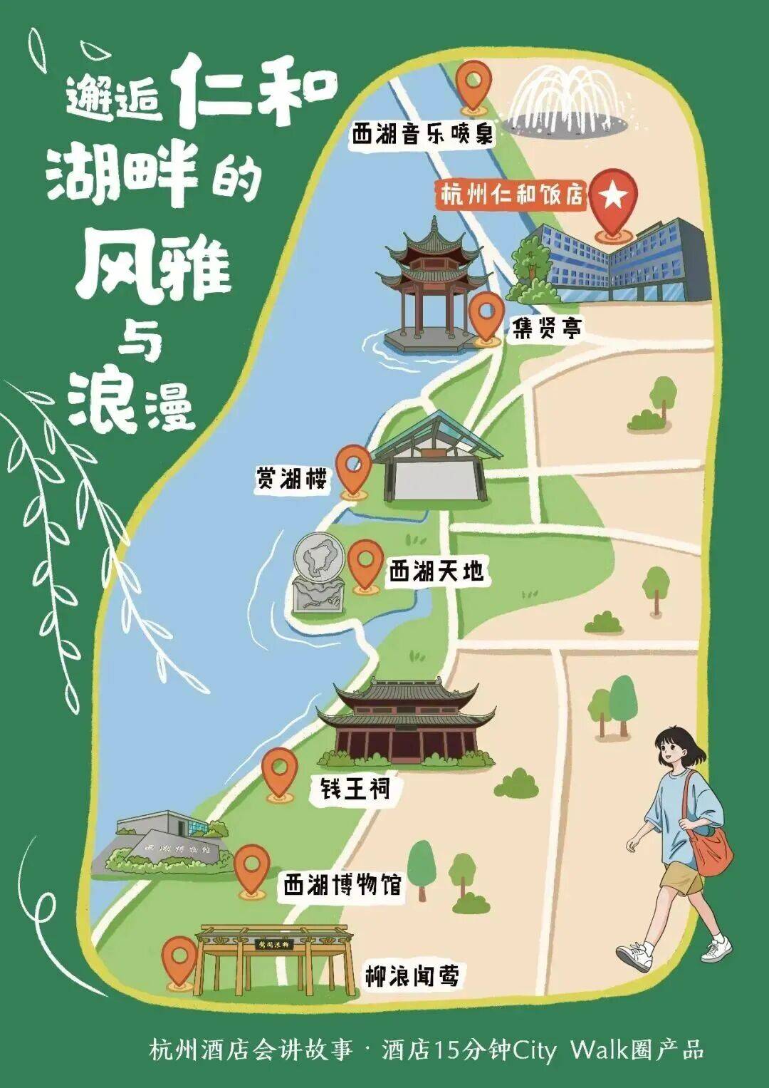 杭州仁和饭店一西湖音乐喷泉一集贤亭一赏湖楼一西湖天地一钱王祠一西湖博物馆一柳浪闻莺