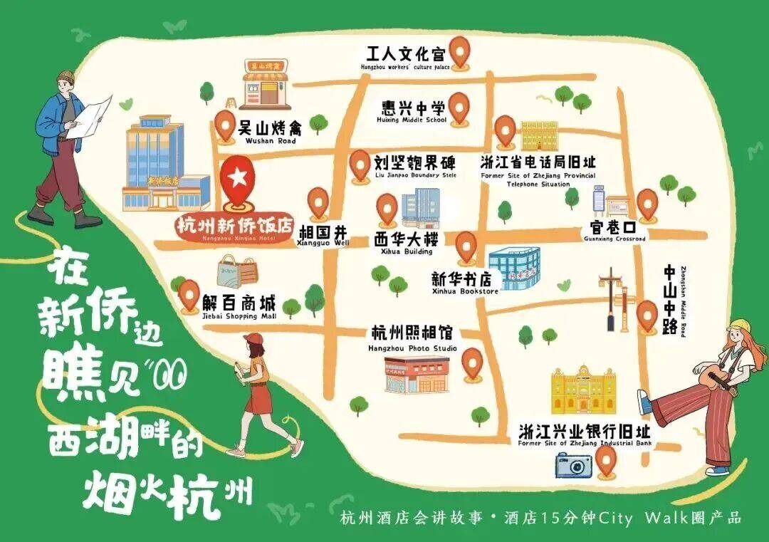 西子湖畔,杭州新侨饭店留下了基辛格、金庸、羽西、倪萍等各界名流的身影。漫步线路适合外地游客、历史爱好者及摄影爱好者。在这里,主理人将带你沉浸式瞧见西湖边的烟火杭州,缓步慢行,游览浙江兴业银行旧址、浙江省电话局旧址、刘坚匏界碑等,将身心浸入晚清以来的历史变迁,感受不同时代杭州的多样风貌。