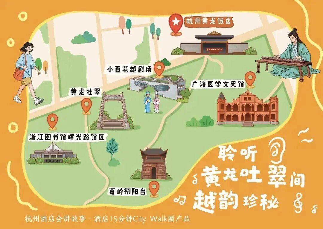 杭州黄龙饭店——小百花越剧场——黄龙吐翠——浙江图书馆曙光路馆区——葛岭初阳台——广济医学文史馆
